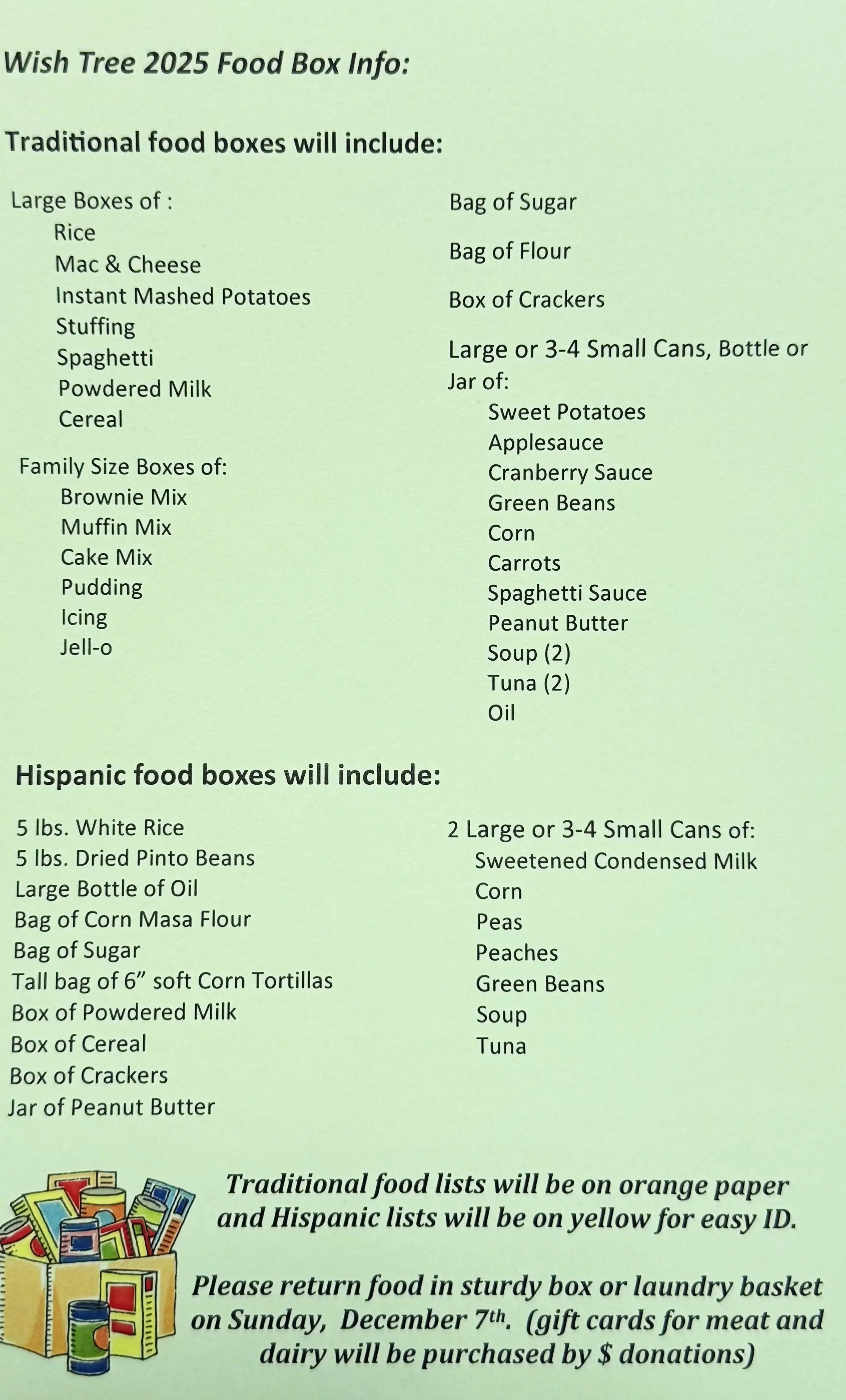 Sunday, December 7th: Deadline to return UNWRAPPED gifts and food baskets to the church.